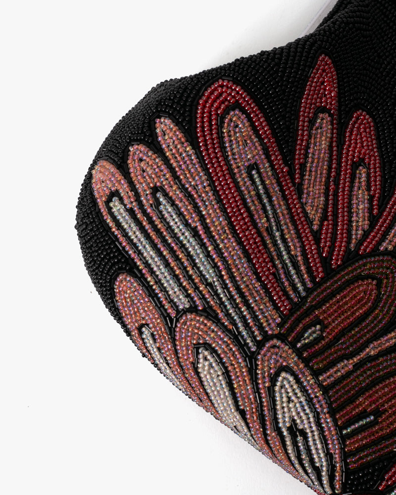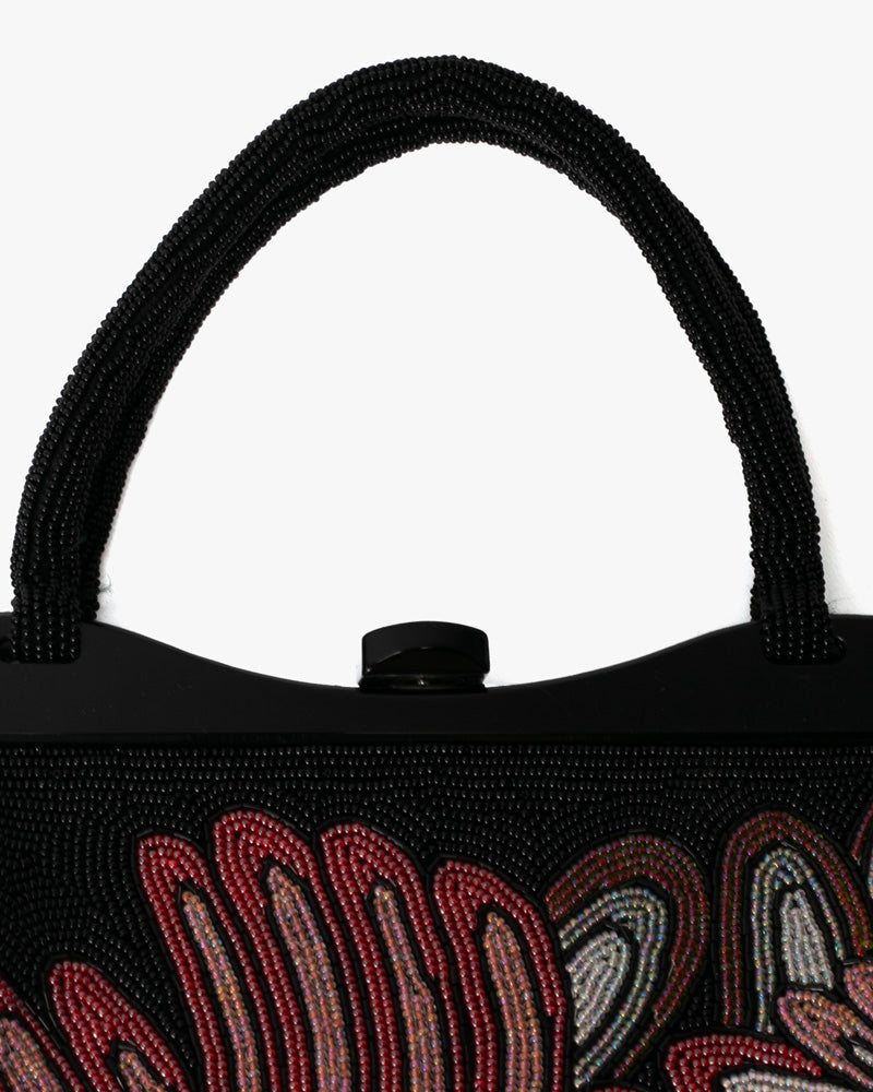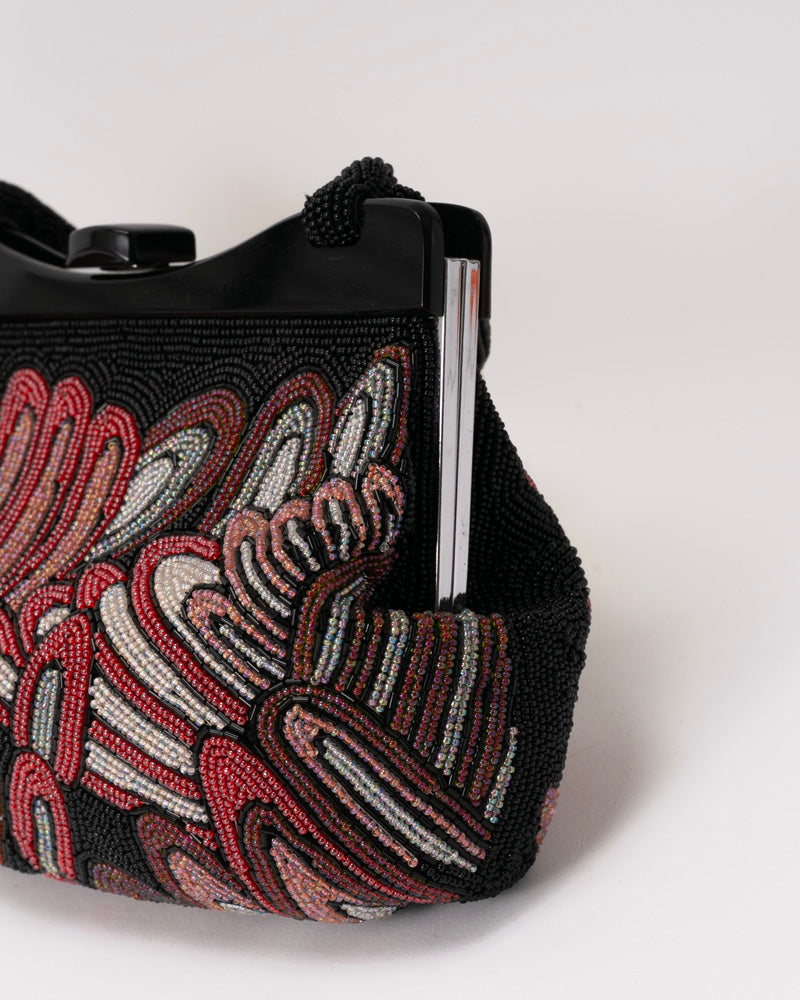 • Vintage Bag, Purse, Beaded, Shades of Pink, Coral and Red, Abstract Feather Design