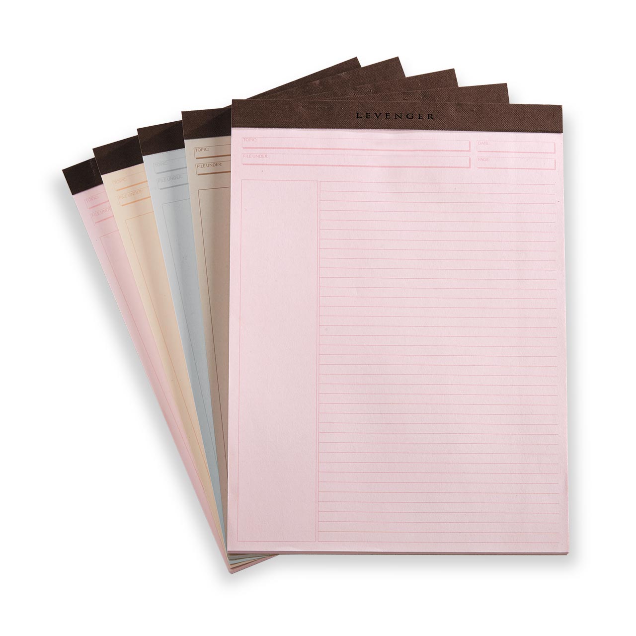 This Product Ships Free. Softly shaded annotation-ruled notepads for the paper aficionado. At Levenger, we understand being particular about paper. Our Modern multicolor Freeleaf® notepad paper is smooth and substantial, friendly to all types of pen and ink and made with sturdy 100-gsm paper stock, with a firm cardboard pad backer for stability when writing. In fact, we believe the quality of these fine notepads can actually help you think better and capture brilliant ideas more effectively. Set of 5, two in Pale Pink and one each in Taupe, Soft Coral and Shadow.